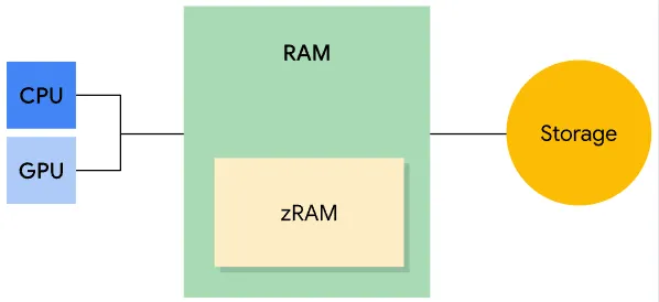 - 内存分为了日常使用的RAM和用于压缩换出的zRAM。