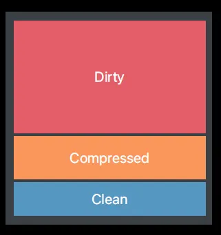 当ios内存不足时,会尝试将dirty内存进行压缩,塞到Compressed内存中,所以常见的memory分布如下